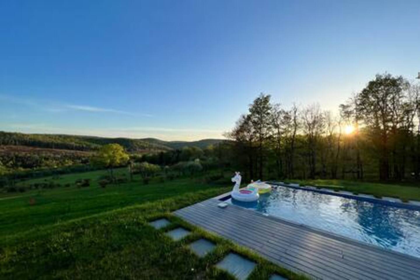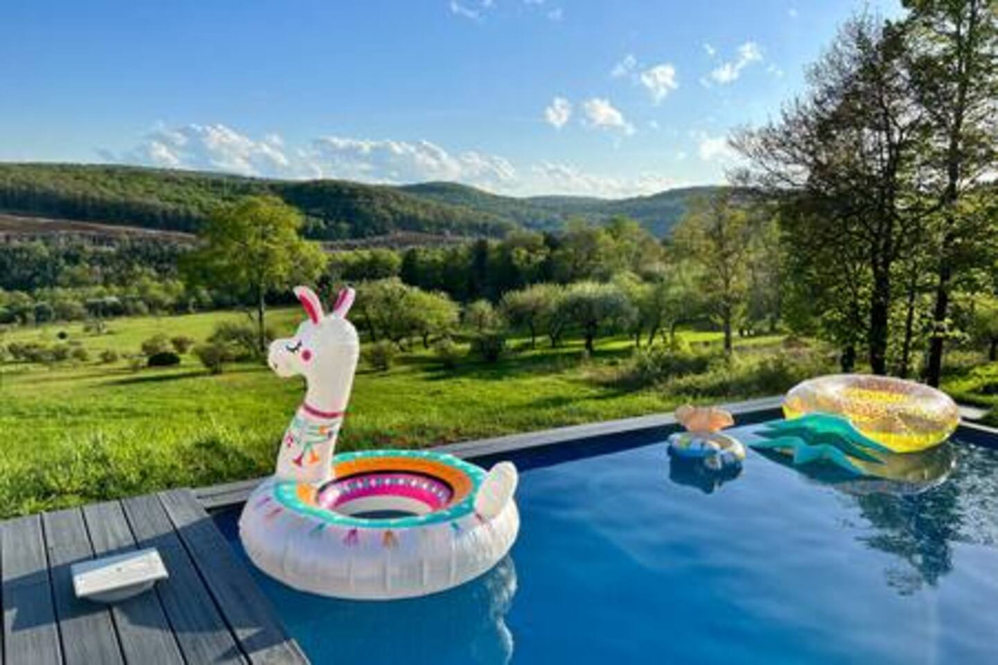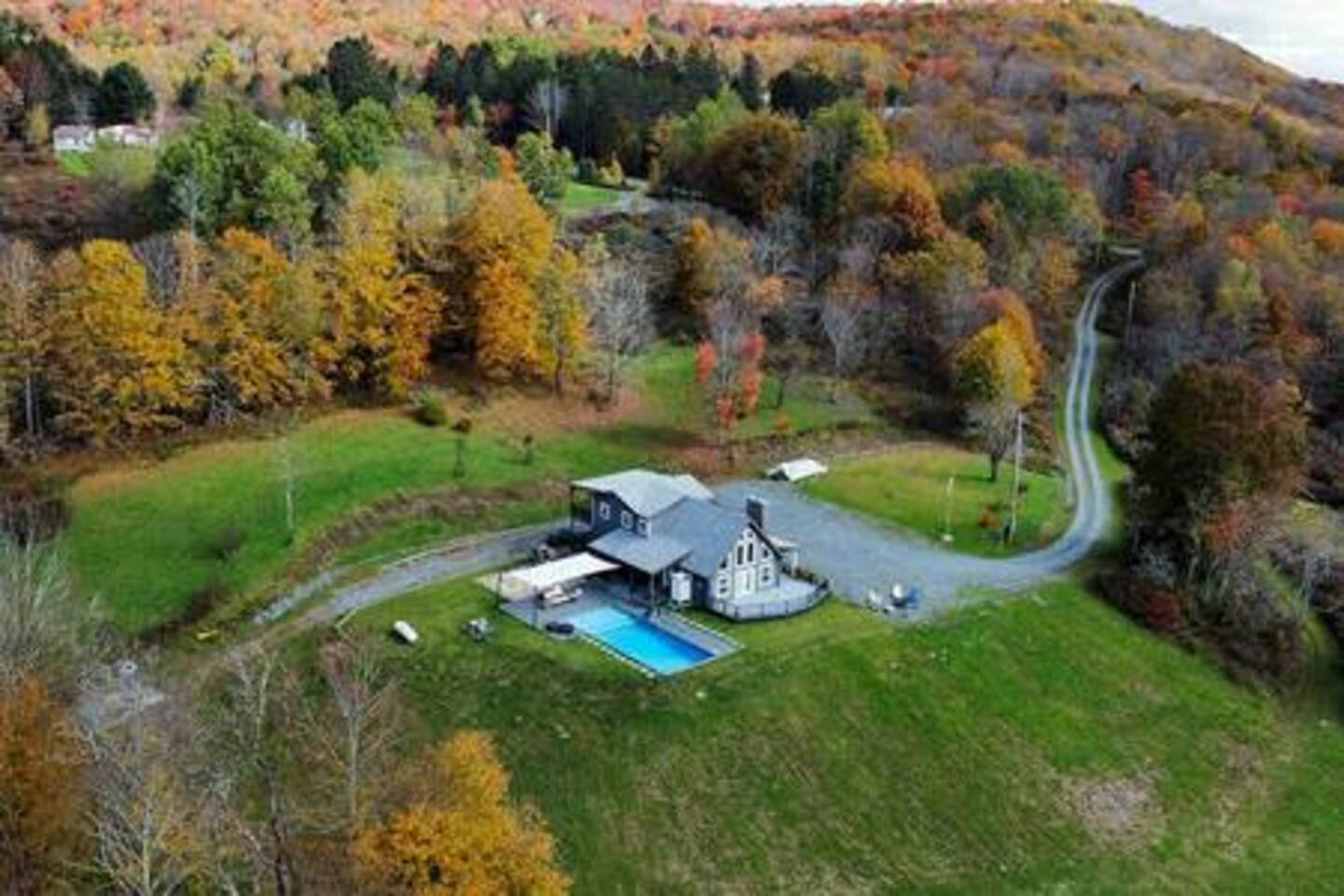 Au Bon Orchard is nestled between some of the Catskills most popular destinations like Roscoe, Liberty and Livingston Manor; you will find Au Bon Orchard. - 2 Hours from NYC - Infiniti Pool (May - Mid September) - Hot Tub - EV Car Charger - 56 Private Acres - Private Waterfall - Catskill Mountain Views - Close to: Neon Croissant, The Smoke Joint, Livingston Manor, Liberty - 3 Beds 2 Bath