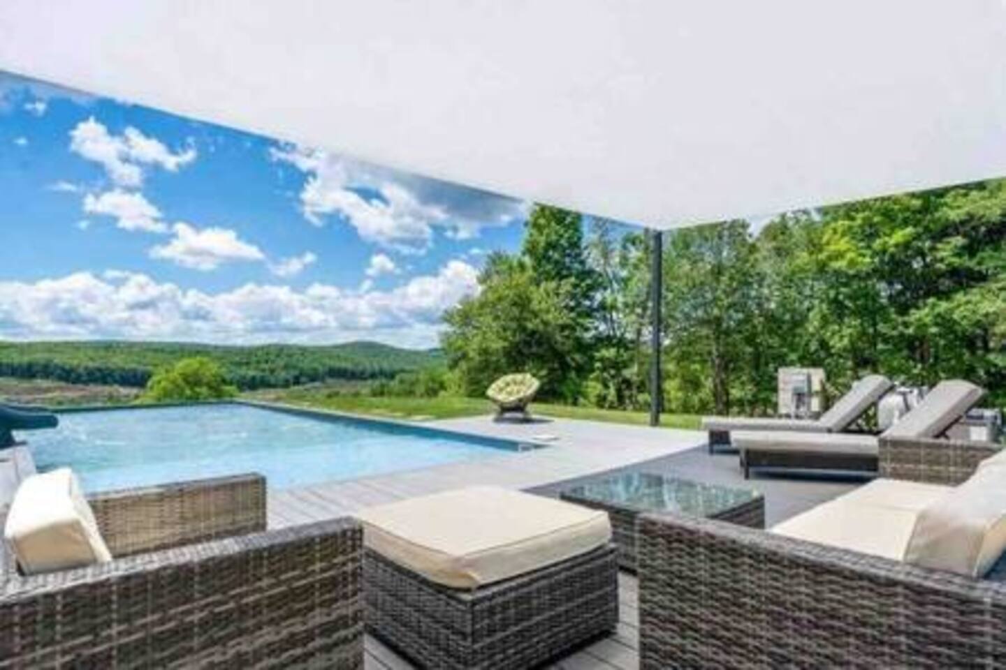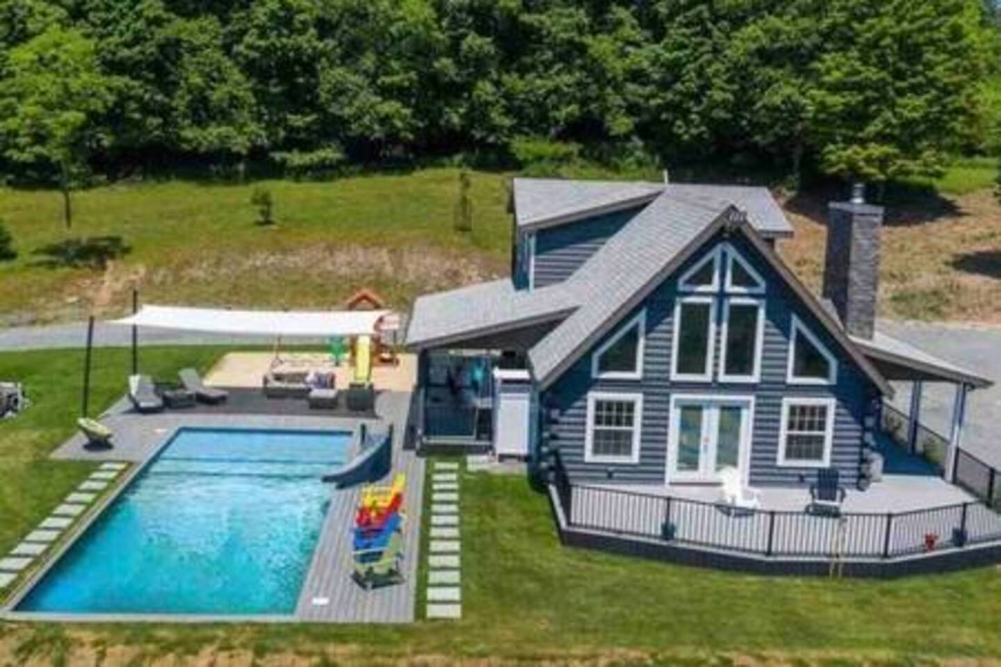This property is the hidden gem of Sullivan County. 3 bedrooms that comfortably sleeps 6 people and additionally can provide air mattresses for those who desire them. The bedrooms include a Primary with a king sized bed an en suite bathroom complete with a soaking tub and standing shower. The two other bedrooms are on the main floor; one with a queen sized bed and the other with two twin beds. These bedrooms share a full bath. If you plan on working while you're here; enjoy the 400MB/s internet connection to compliment your productivity. The home is also complete with a wrap around deck that provide ample views of the Catskill mountains, an outdoor kitchen complete with countertop, cooler and propane grill. Of course we should mention the in ground heated (85F) salt water infinity pool (Open May 1st - September 30th) and fire pit. If the temperature has cooled and you'd like to warm up on a cool night take a dip in our Hot Tub / Spa. Our Spa has multiple Jets and settings to help relax those achy muscles. When you want to venture away from the main house the property also contains a pond, many hiking trails and a water fall for you to enjoy. When you're ready to settle in for the evening or want to lounge on the couch we also provide streaming services such as Youtube TV (cable), Netflix, Disney+ and Hulu. We always provide the following: - Wood for fireplace and fire pit - Bath Towels ( 2 Body Towels, 1 face 1 wash cloth). One set per guest. - Pool/Hot Tub Towels - All bedding for beds. Additional sets located in closets in each room. - Air Mattresses (use additional bedding in rooms) - Pillows (Additional pillows of different comfort levels in closets) - Public Goods Shampoo, Conditioner and Body Wash. What You Should Bring: - Water proof boots if you plan on hiking around the property - House shoes - Flip flops for walking around the patio - A robe if you plan on using the hot tub and a towel is not warm enough for you to get from the tub to the house. Who we are: We are a group of long time friends who wanted a home away from the city where our families could relax and enjoy some peace and quiet. We are self owned and operated. No, we are not management company. We are happy to answer questions from other owners however, we politely ask that we are not contacted if you are interested in us hosting your property. Although we appreciate the compliment. We hope you enjoy your stay at Au Bon Orchard.